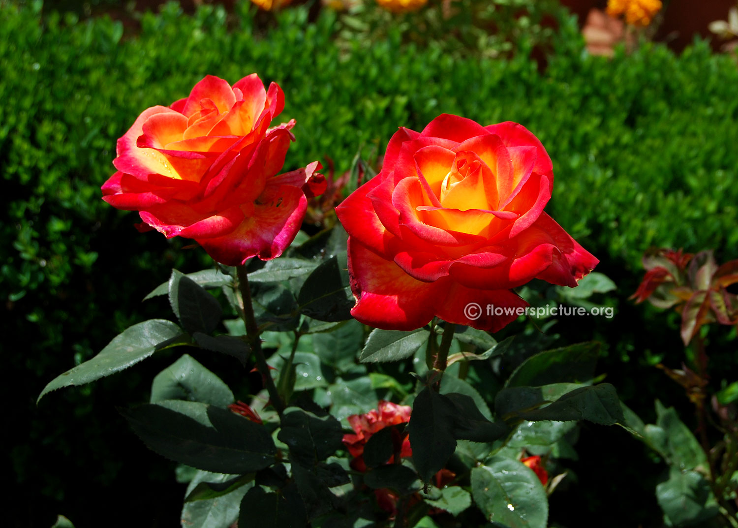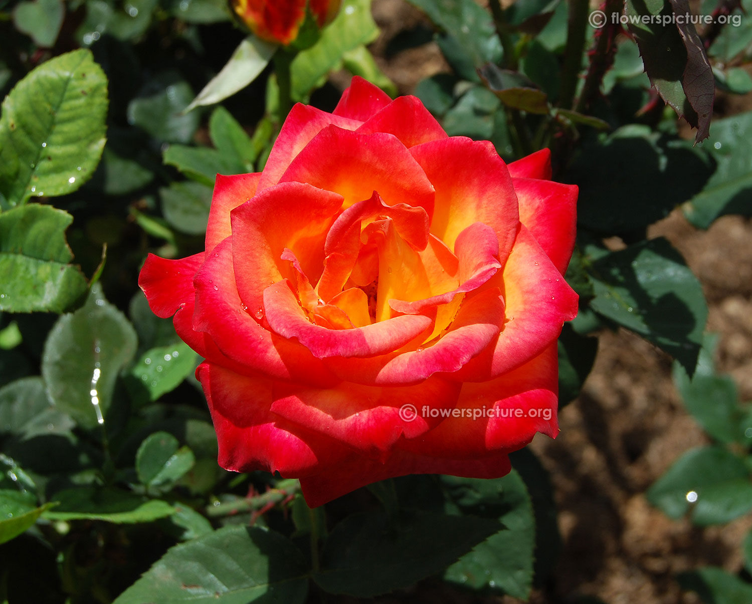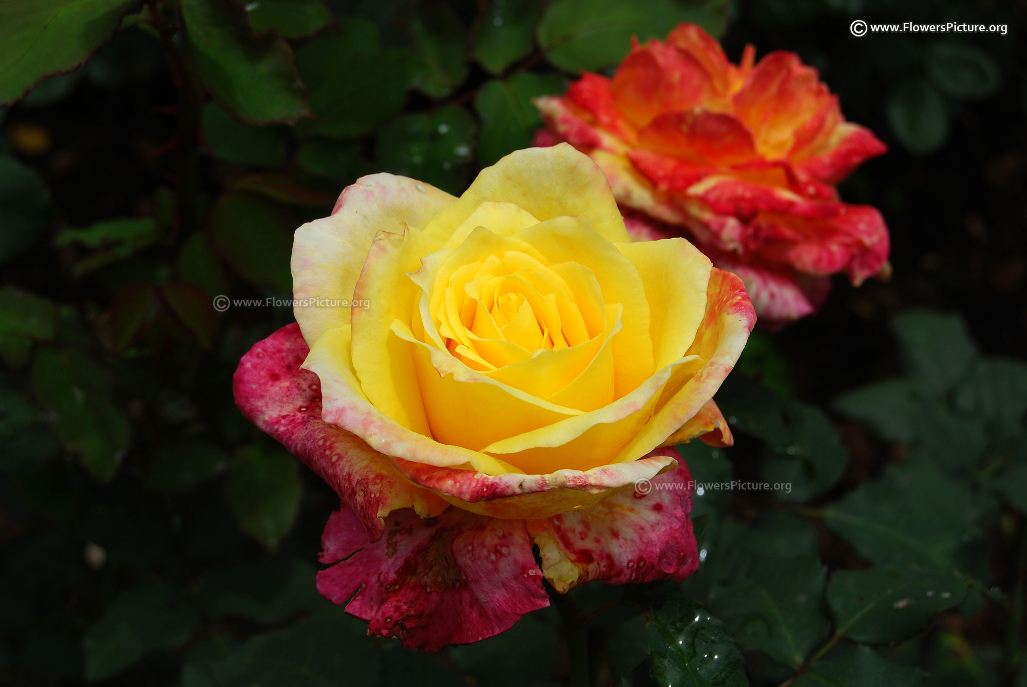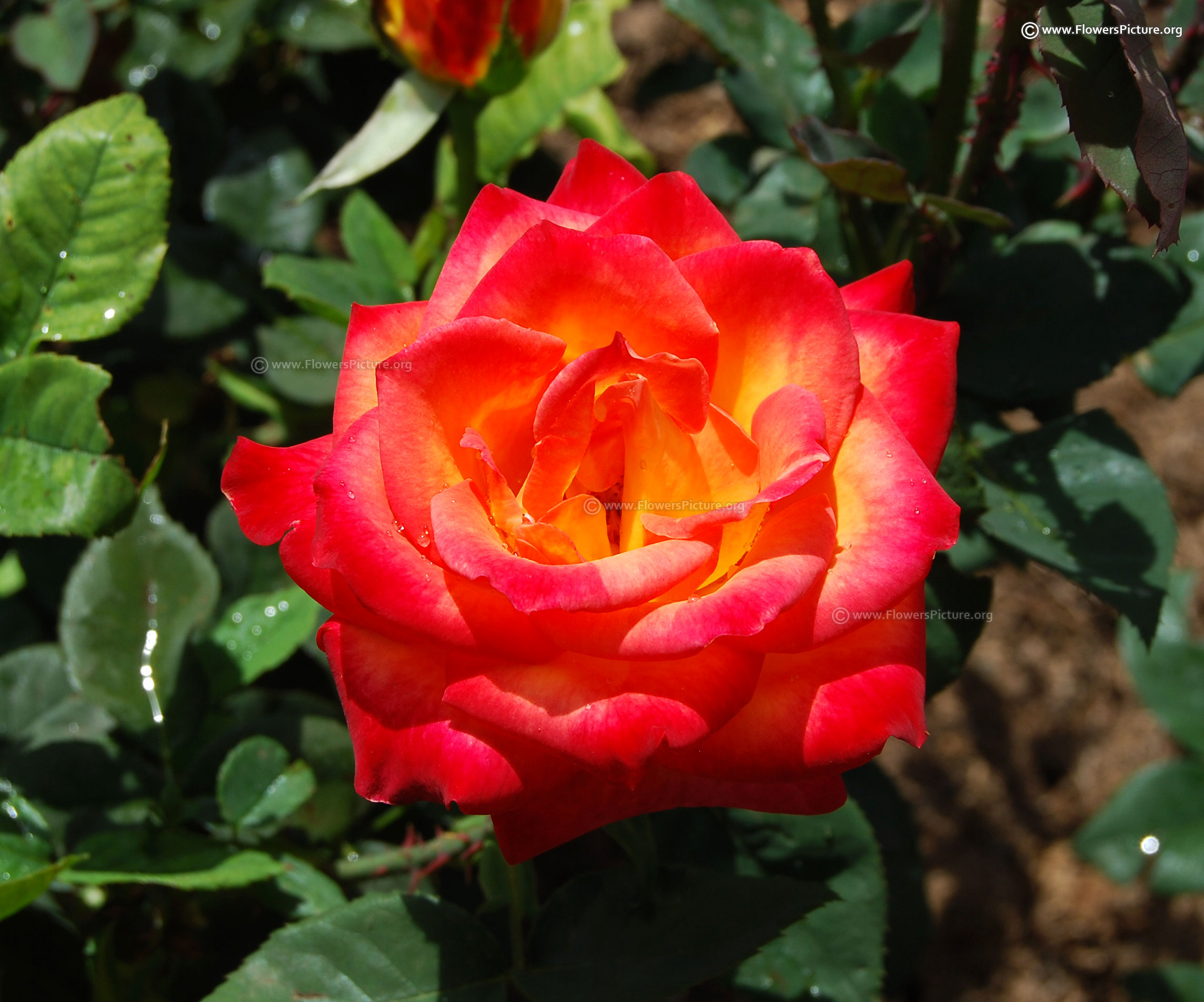 Flowers : Yellow, red, bicolour, showy, fragrant, hybrid tea rose