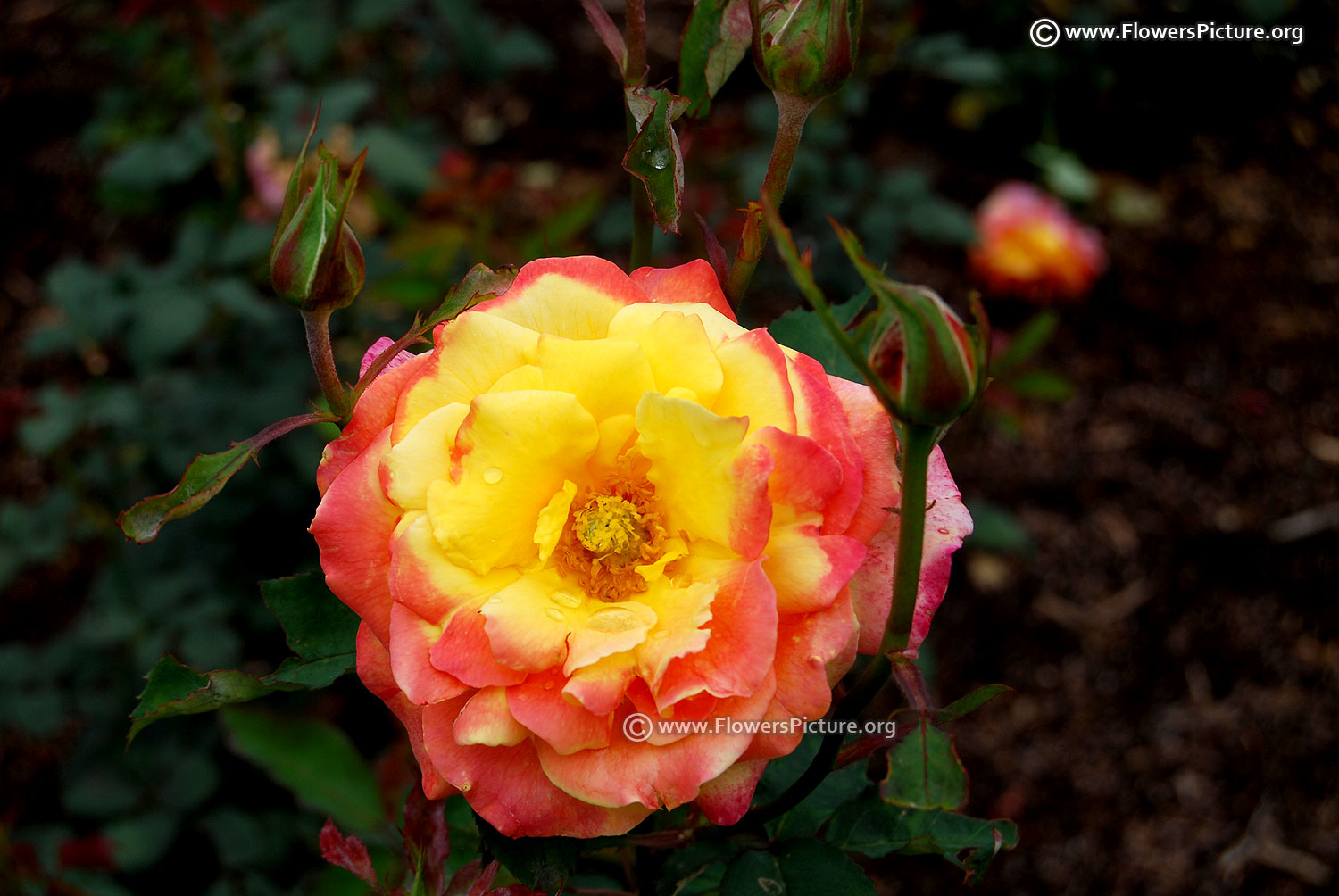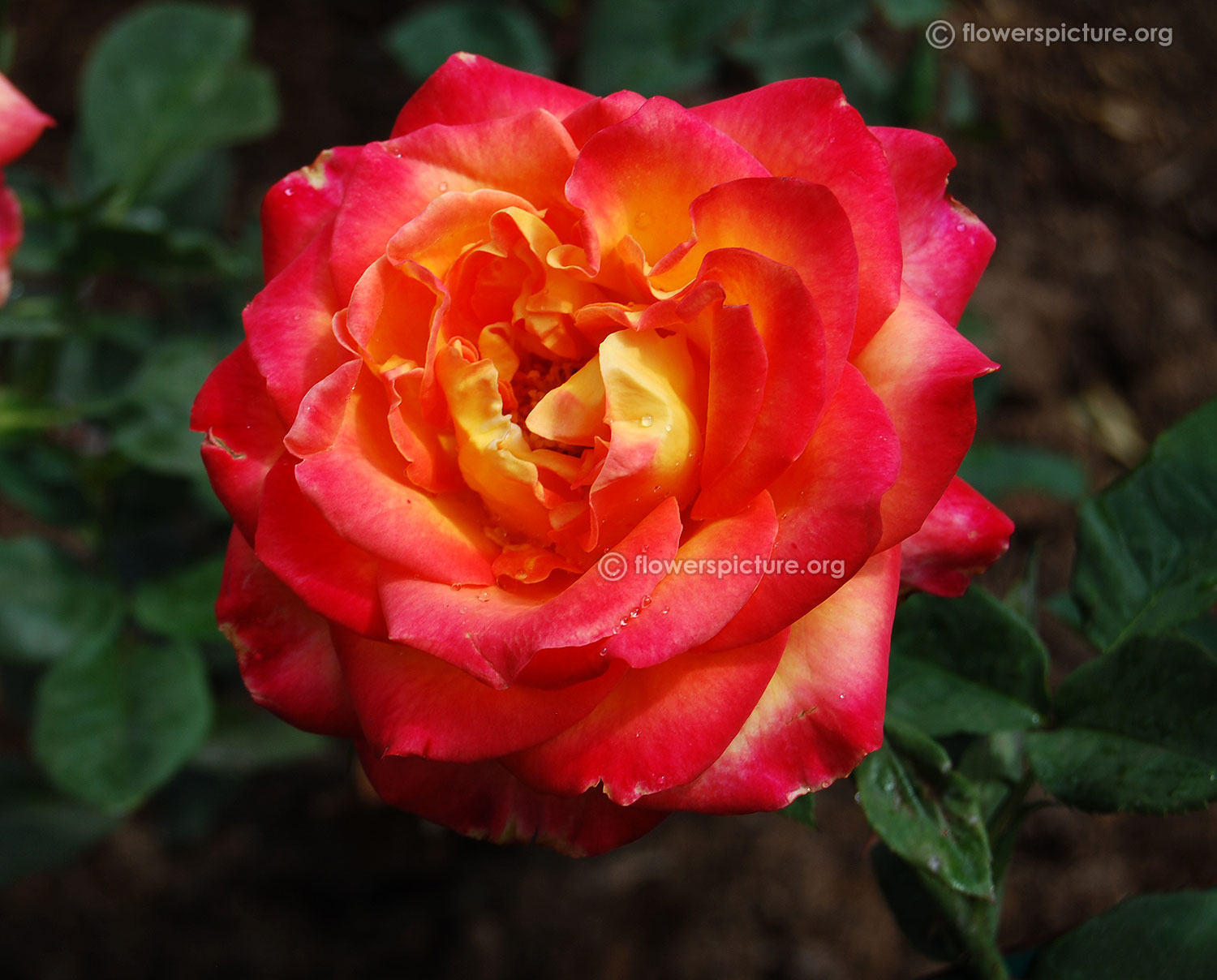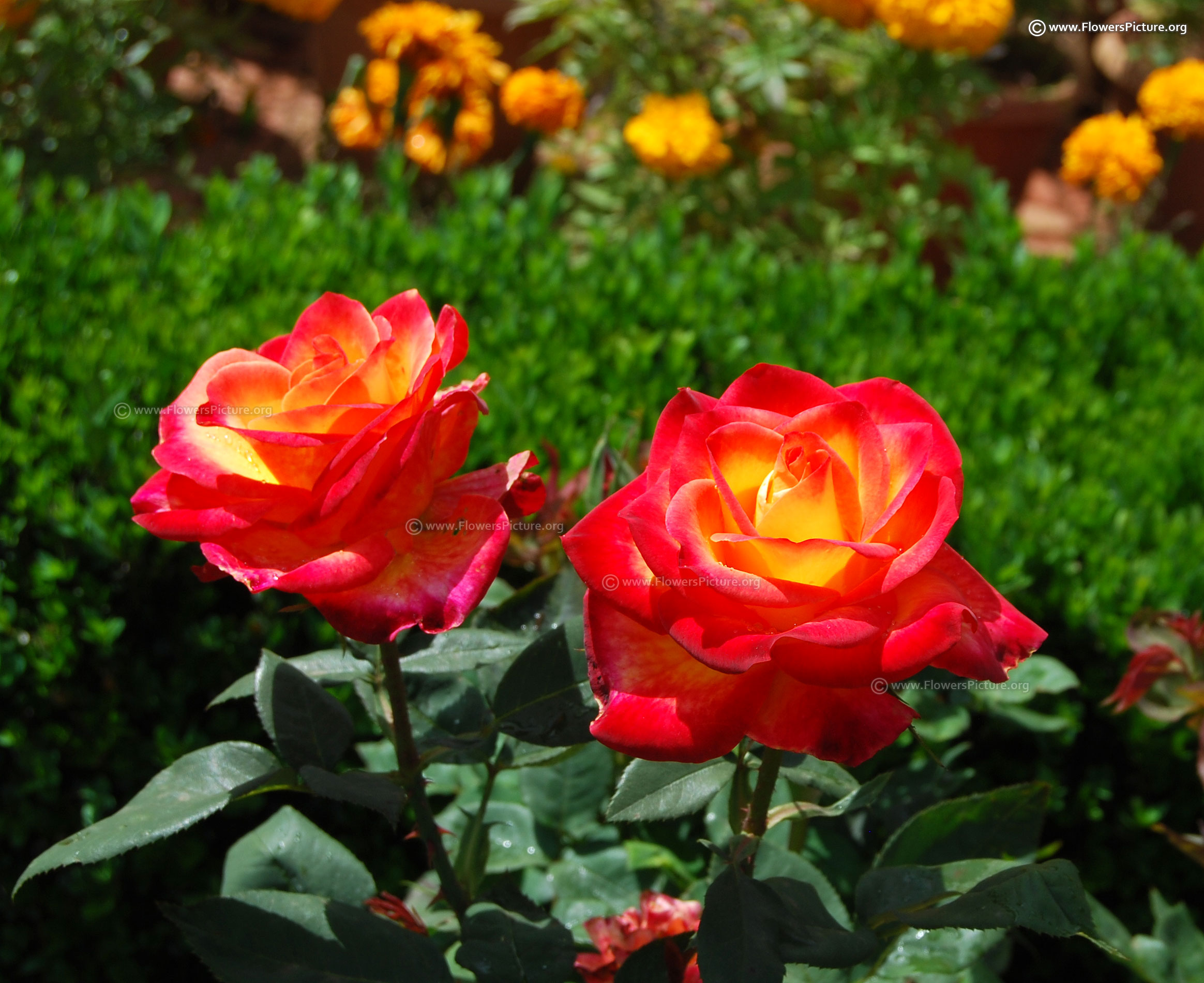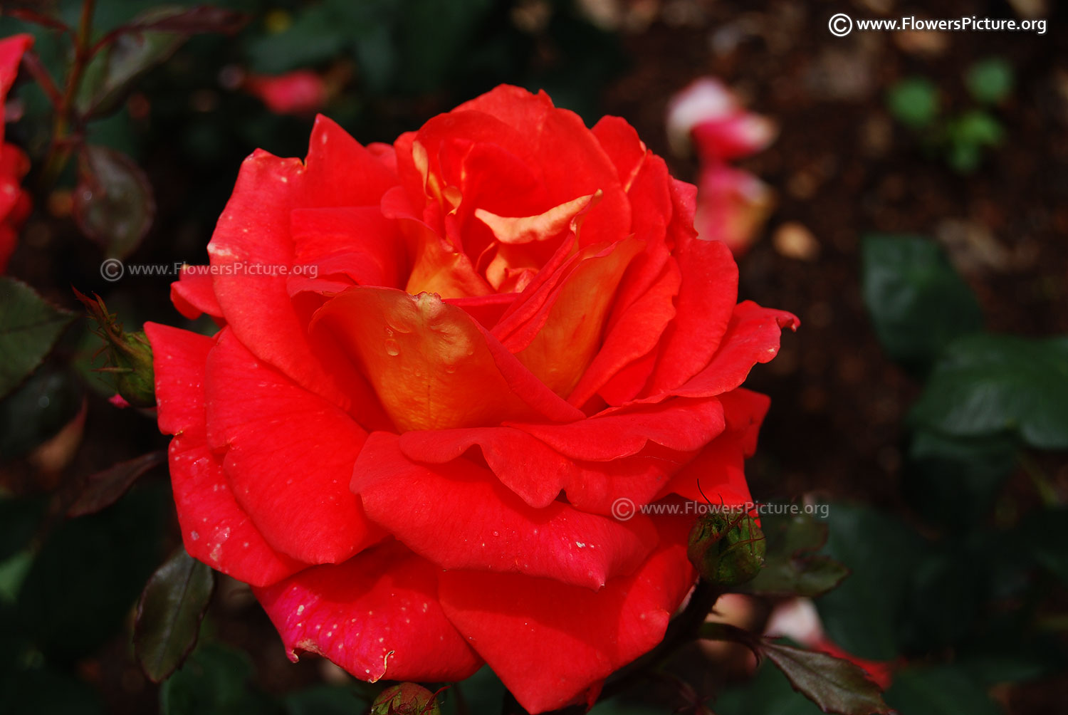 Flowers : Yellow, red, bicolour, showy, fragrant, hybrid tea rose
