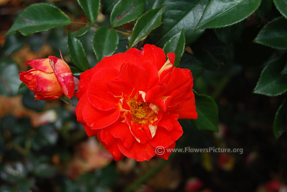 Flowers : BloodRed with yellow bicolour, large, showy, fragrant