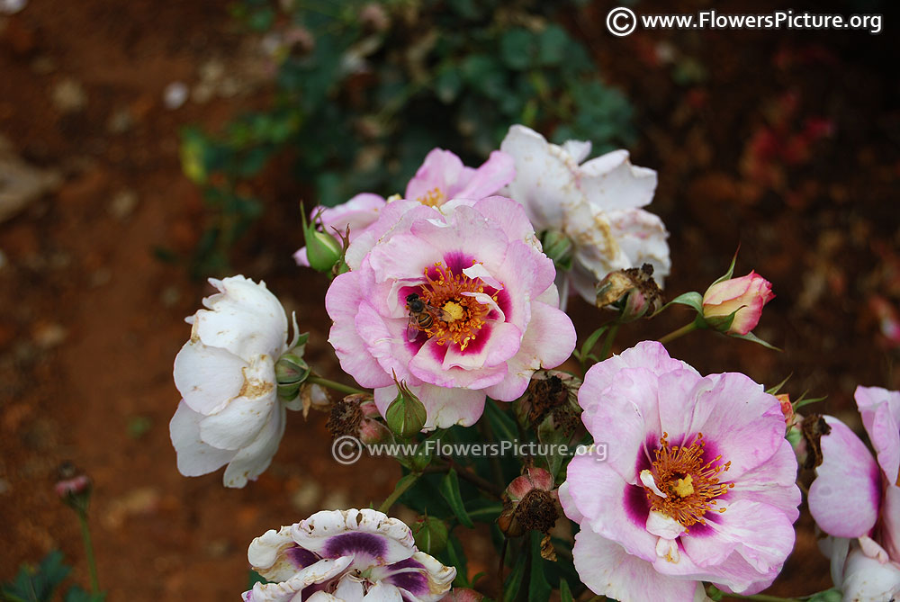 Flowers : Pink, red, beige mixed, showy, fragrant, colourful