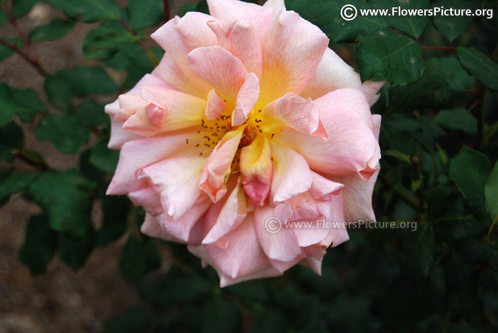 Flowers : Pink with light yellow, bicolour, large, fragrance, colourful, showy