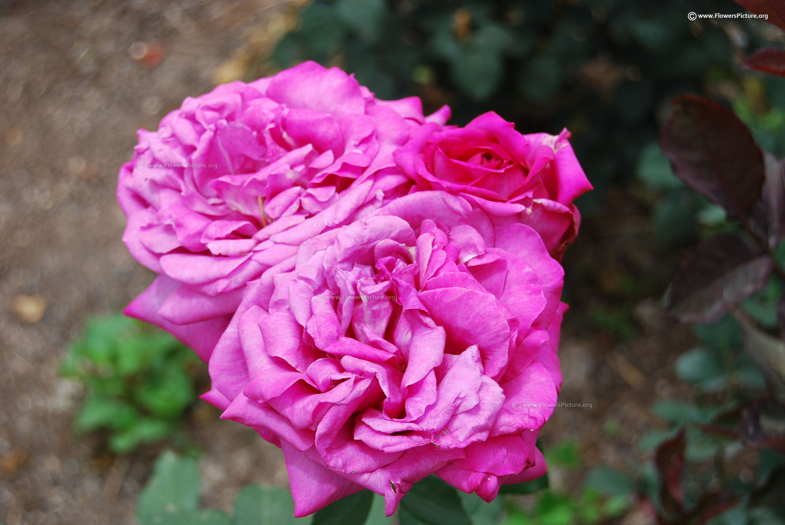 Flowers : Medium violet red, pinkish purple or pinkish violet or plum with hot pink color, large, fragrance