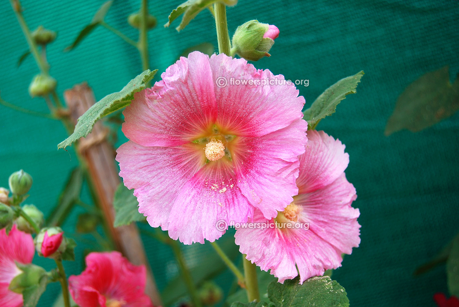 Common Name: Hollyhocks, alcea rosea pink