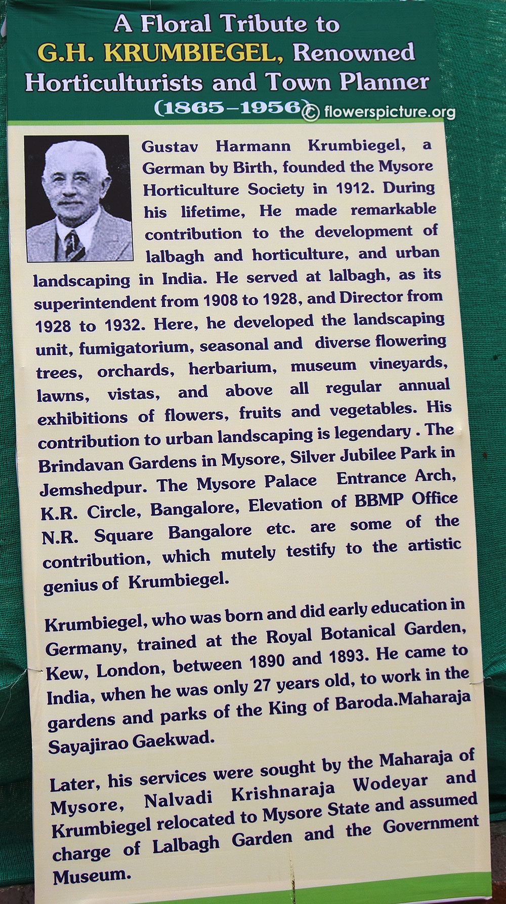 Common Name: Floral tribute to krumbiegel renowned horticulturists and town planner