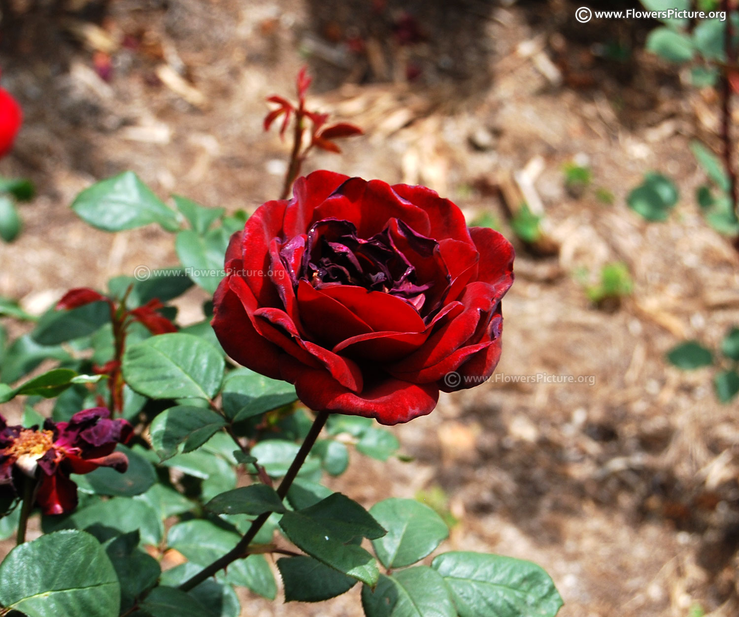 Flowers : Dark magenta red or cardinal color flowers, large, fragrance, showy
